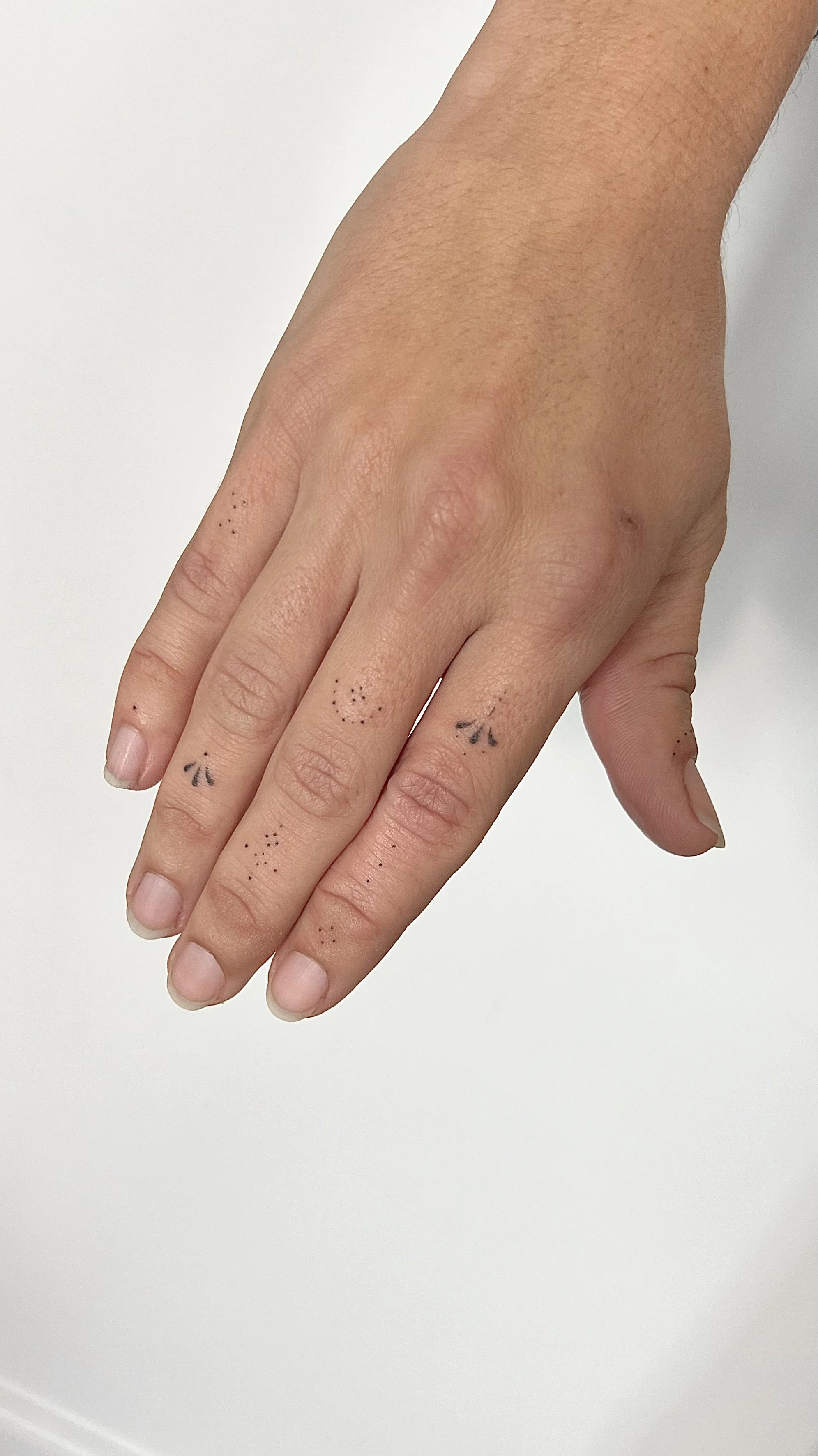 Tatuajes en los dedosEllos desprenden creatividad y fantasía. Detalles que bailan con el movimiento de las manos expresando, con cada gesto, la personalidad de quien los lleva.