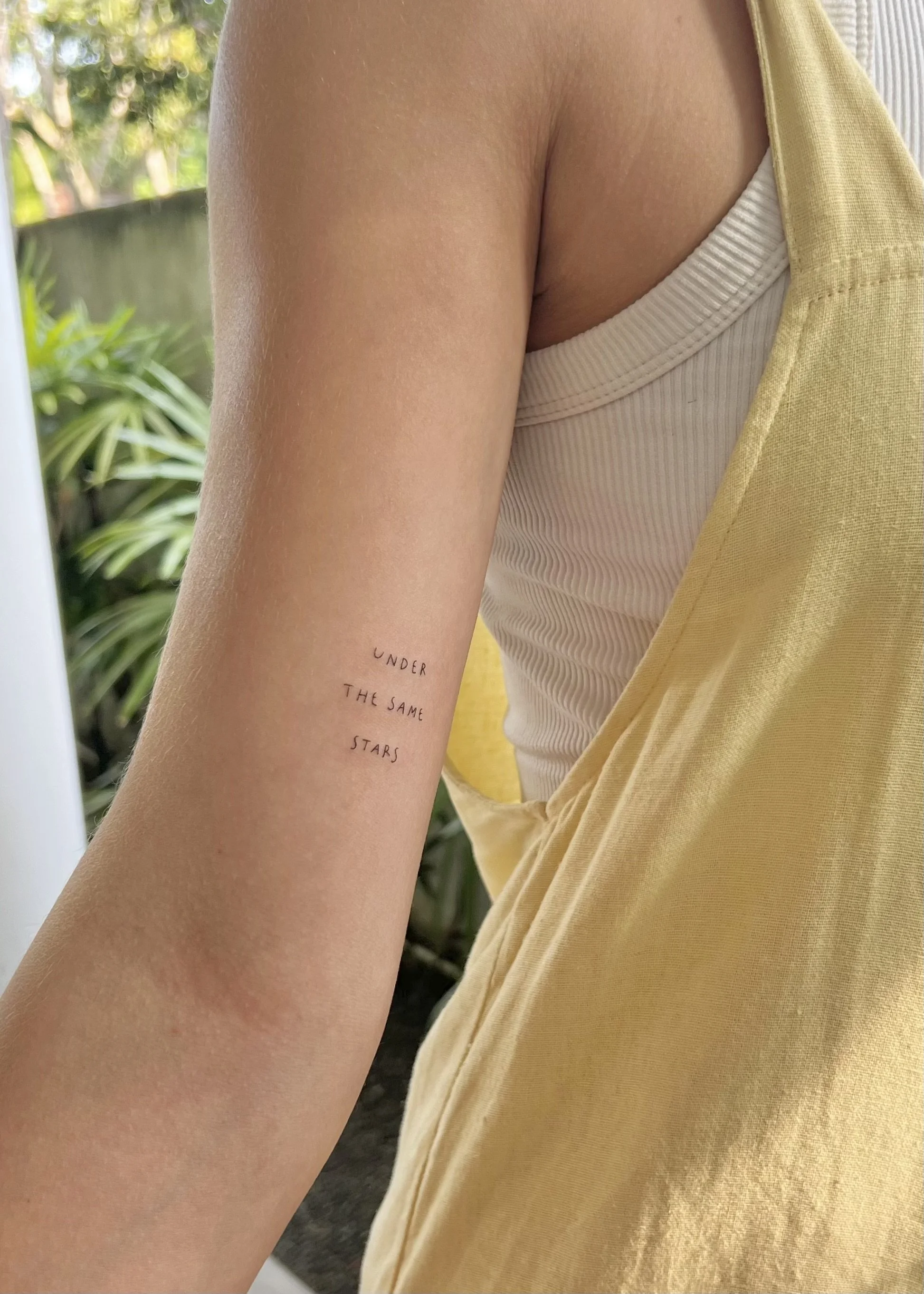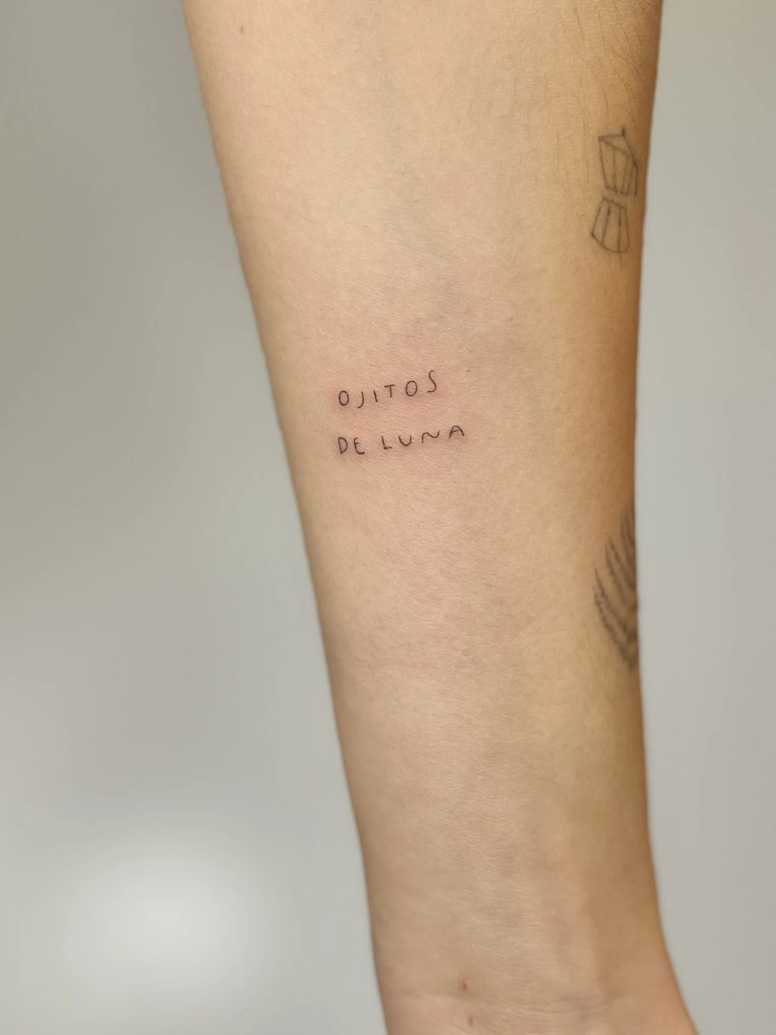 Tatuajes de palabrasLos tatuajes de palabras conectan con lo más íntimo: recuerdos, personas, conceptos o nombres que nos inspiran y queremos tener grabados para siempre.